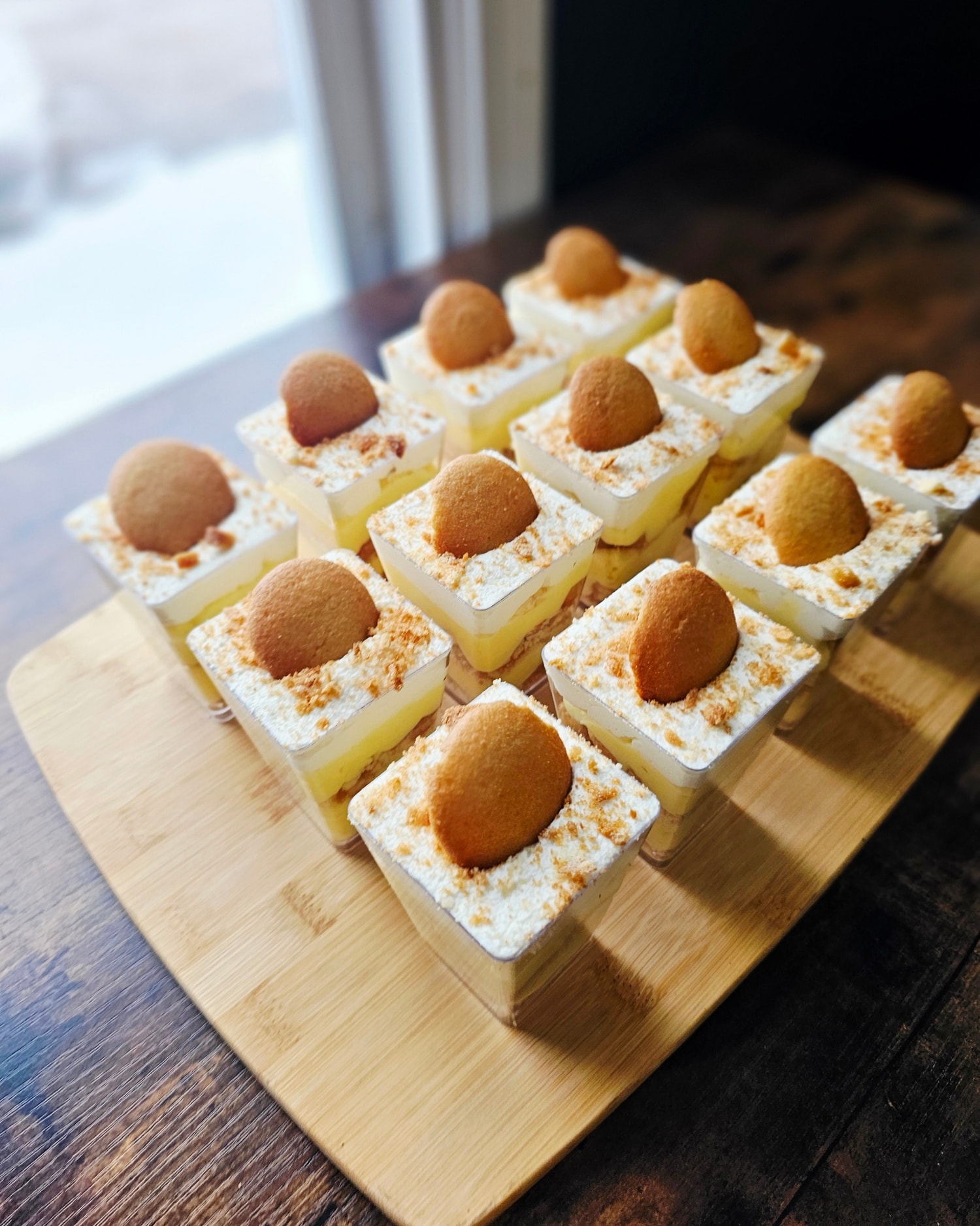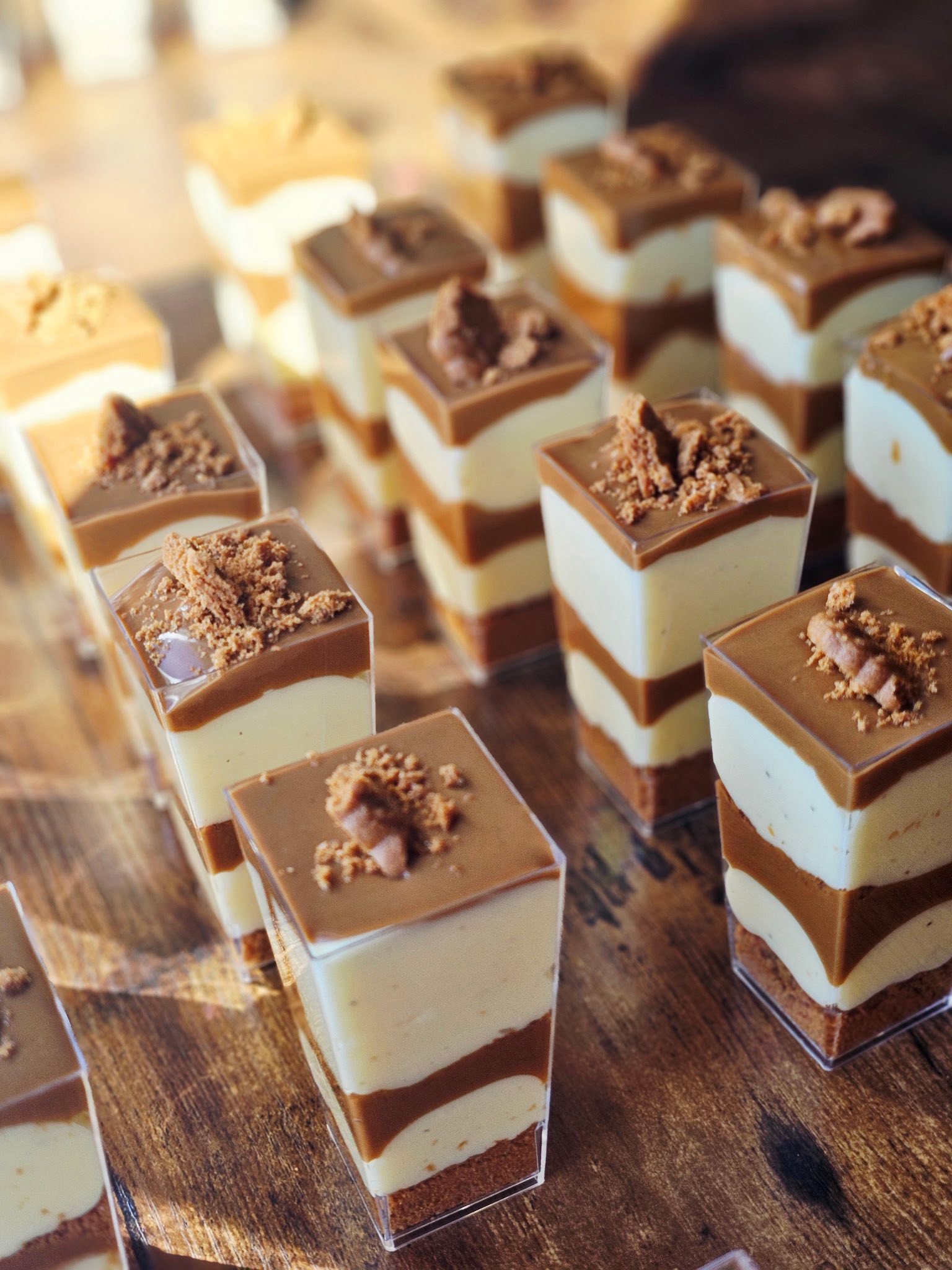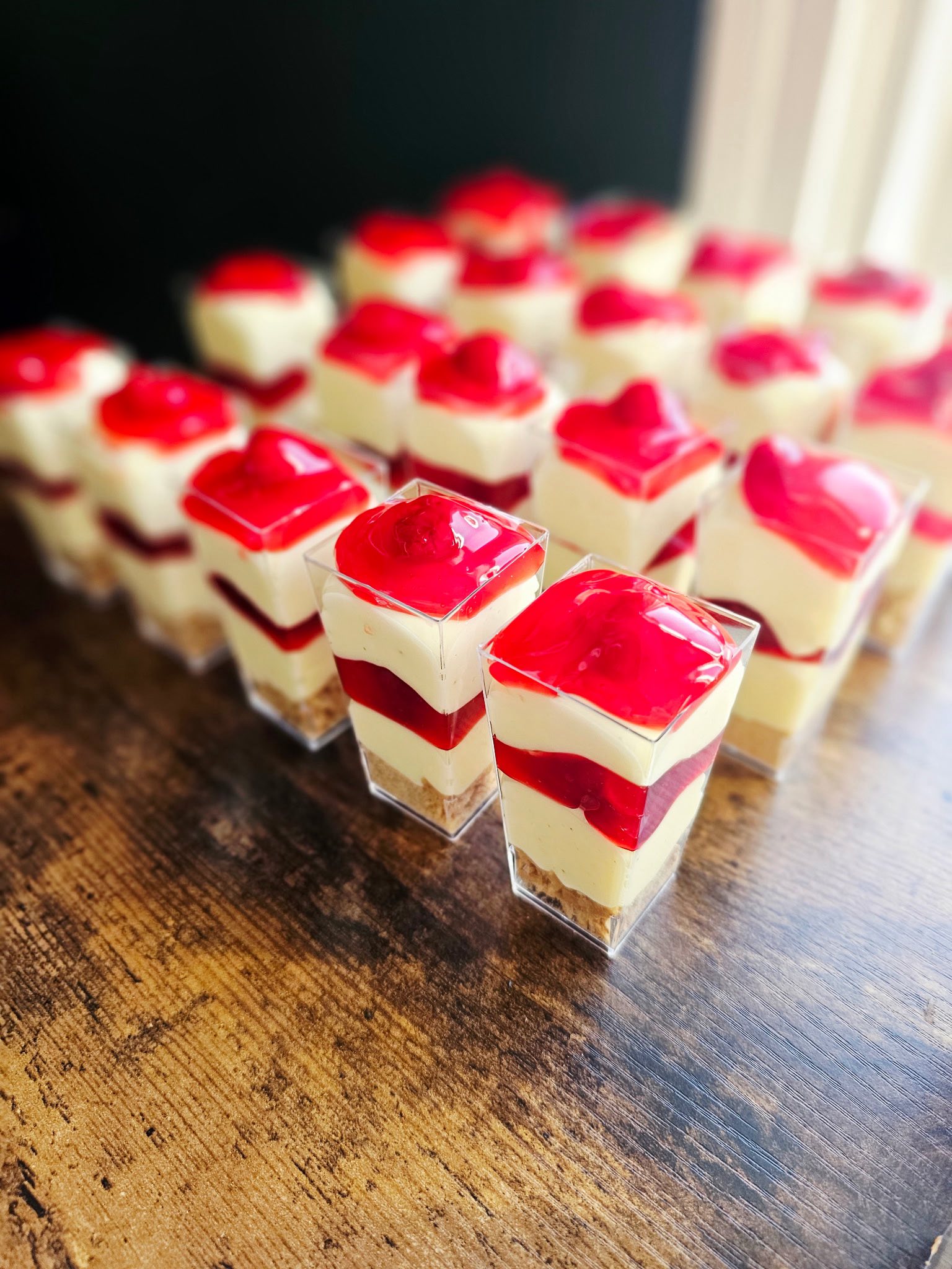 Give your guests the luxury of choice without the mess of a traditional dessert table. Our 2.5 oz shooters are the ultimate single-serve solution, featuring layers of our from-scratch cheesecake and house-made crumbles.